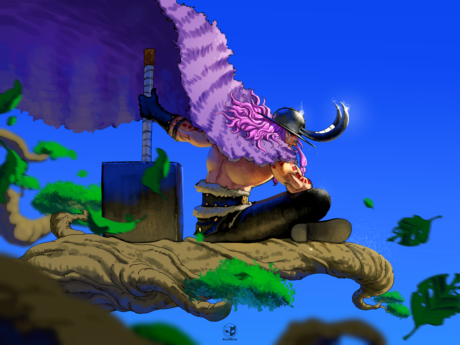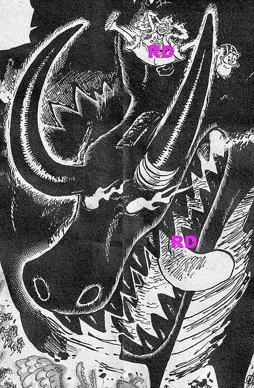 Spoilers do capitulo 1174 de One Piece, revelado a forma dragão de Loki o Gigante mais forte, acima de sua cabeça está luffy GEAR 5 em sua forma Gigante e mesmo assim o chifre da fera chega a ser maior que o Chapéu de Palha.