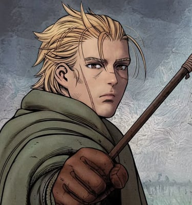 Thorfinn é o protagonista de Vinland Saga. Ele começa a história como um garoto gentil, filho do lendário guerreiro Thors, mas sua vida muda drasticamente após presenciar o assassinato do pai. Consumido pelo ódio, Thorfinn cresce no campo de batalha, tornando-se um jovem guerreiro frio e habilidoso, movido apenas pelo desejo de vingança contra Askeladd.